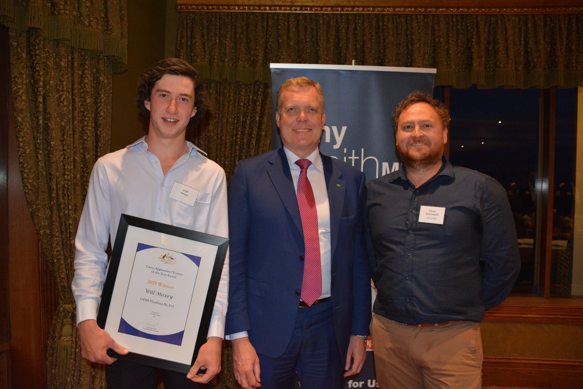 Will made the shortlist of 10 finalists from hundreds of nominations and credits his team for the opportunity to flourish as an apprentice. The award was presented by federal Speaker of the House of Representatives and Member for Casey Tony Smith MP. For more information take a look at page 40 of the Australian Plumbing Industry magazine – Summer 2019.